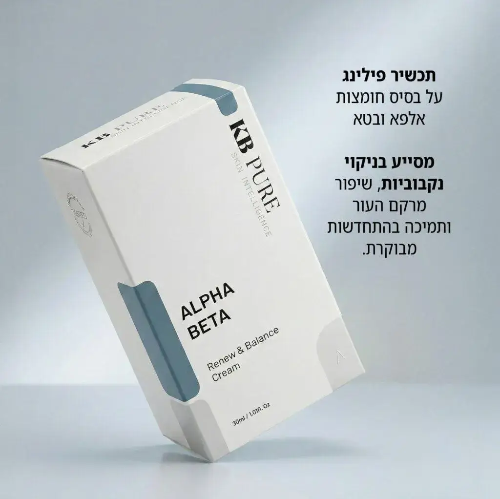 אלפא בטא הוא תכשיר חידוש פעיל המיועד לטיפול באקנה שאינו דלקתי, תוך התמקדות בניקוז קומודונים, ויסות הפרשת חלב, שיפור מרקם העור וטשטוש סימני פוסט־אקנה.